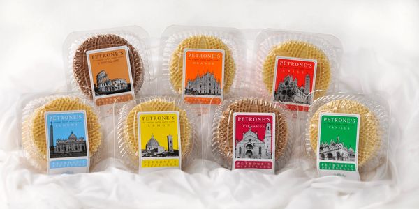 Each package contains 6 ounces of delicious hand baked Italian pizzelle cookies, packaged in a rigid plastic container. Each package contains approximately 12-14 pizzelles. Our italian pizzelle cookies will stay fresh in their packaging for 6-9 months. Available in 7 great flavors: Traditional Anise, Almond, Cinnamon, Chocolate, Lemon, Orange & Vanilla.